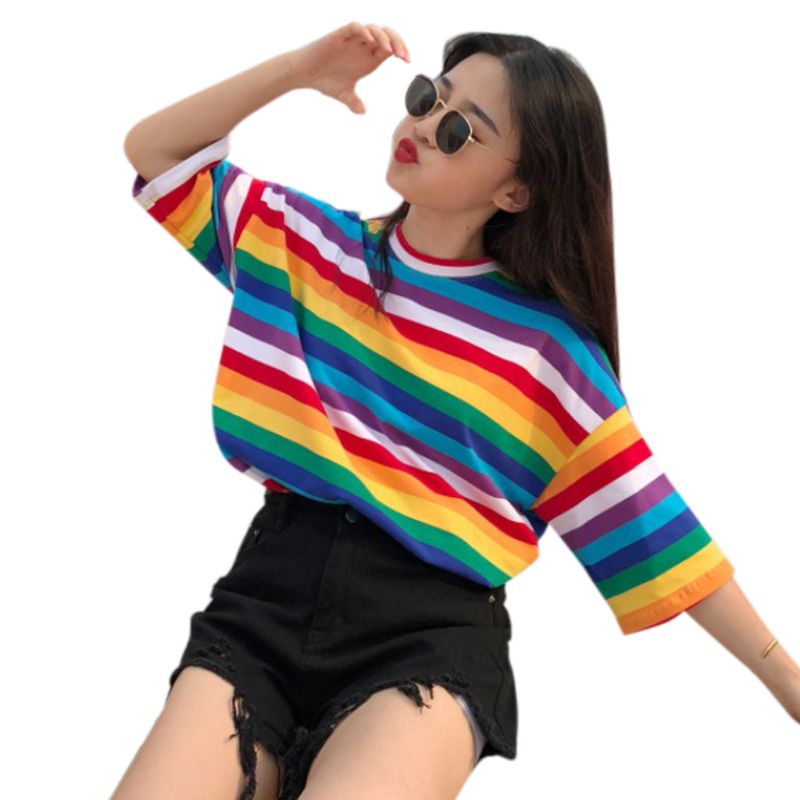 T-Shirt Women Rainbow Striped